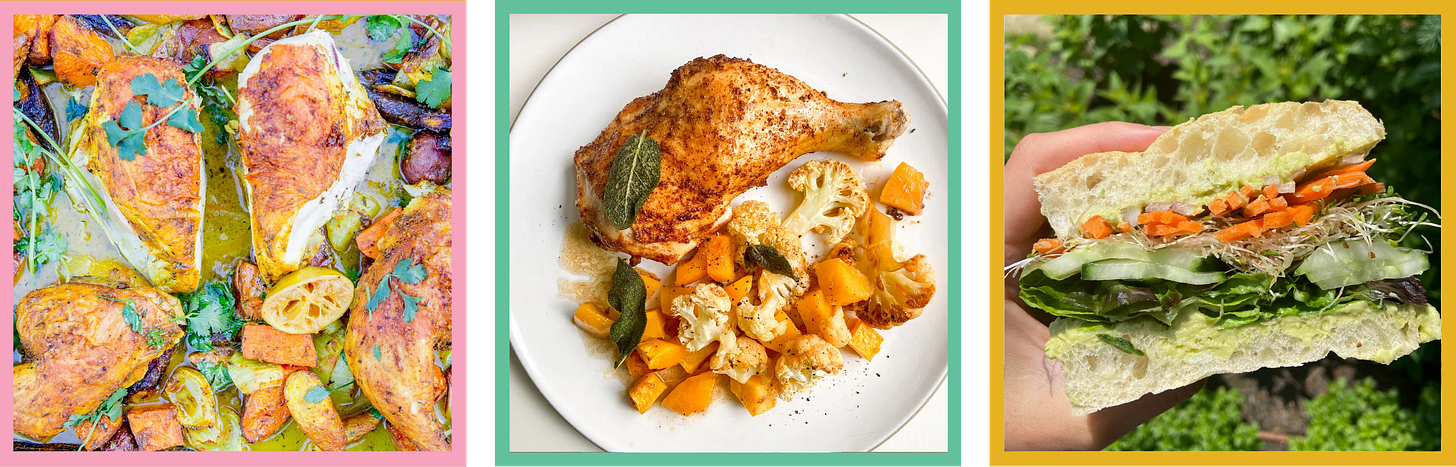 Use kohlrabi in (above, from left to proper) one-pan coconut curry rooster with roasted greens and lime; sheet-pan rooster with cauliflower, butternut squash & brown butter sage French dressing; and on seashore sandwiches.