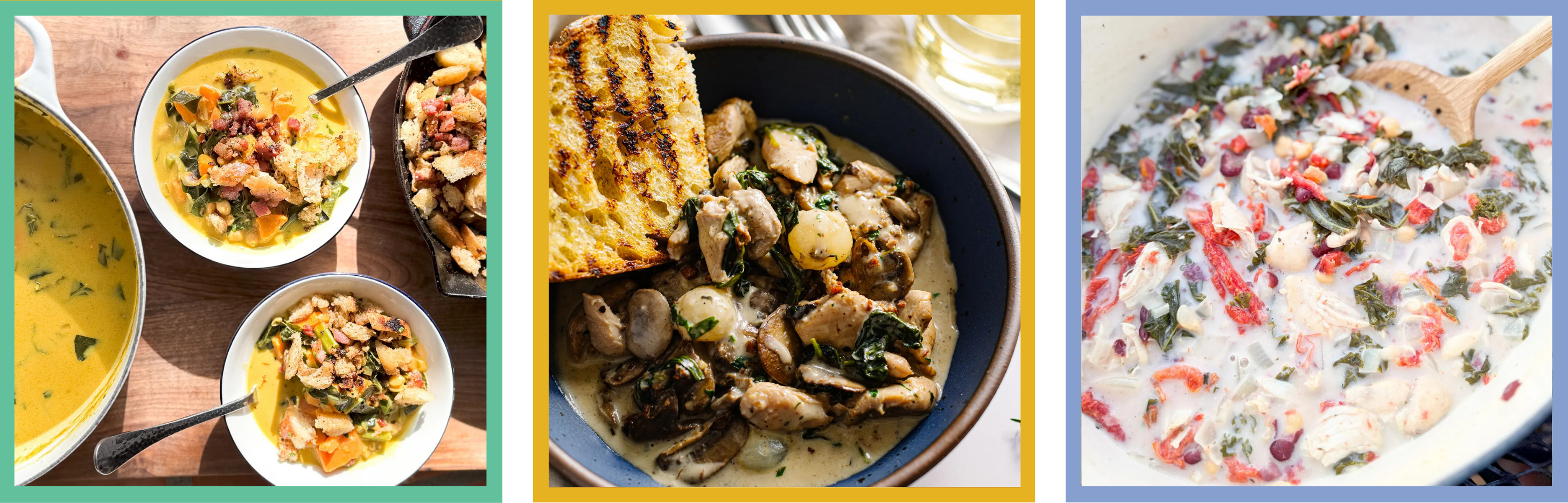 Use Swiss chard leaves in (above, from left to proper) good luck soup; coq au vin, kinda; and good temper rooster and bean soup. I additionally like to sauté Swiss chard leaves and/or some other darkish leafy greens (collards, mustard greens, kale, spinach, and so forth.) with some aromatics for a fast and scrumptious aspect — click on right here for an in depth how-to.