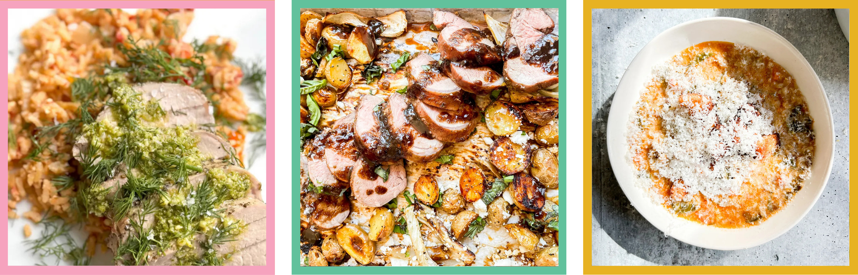 Grab some fennel to cook dinner (above, from left to proper) jammy tomato feta rice with herby pork tenderloin; sheet-pan balsamic glazed pork with fennel and potatoes; and good soup.