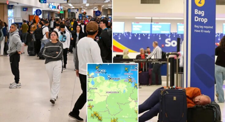 New York-based JetBlue mentioned it canceled about 215 flights “due to airspace closures across the Caribbean related to military activity.”