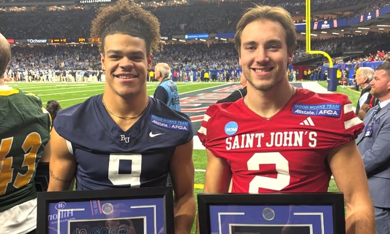 Saint John’s University senior extensive receiver Dylan Wheeler and Bethel University senior cornerback Devin Williams had been chosen to the thirty fourth annual Allstate American Football Coaches Association (AFCA) Good Works Team® for his or her extraordinary dedication to neighborhood service. The Allstate AFCA Good Works Team® was established in 1992 to acknowledge a choose group of faculty soccer gamers who’ve made a dedication to service and enriching the lives of others.
