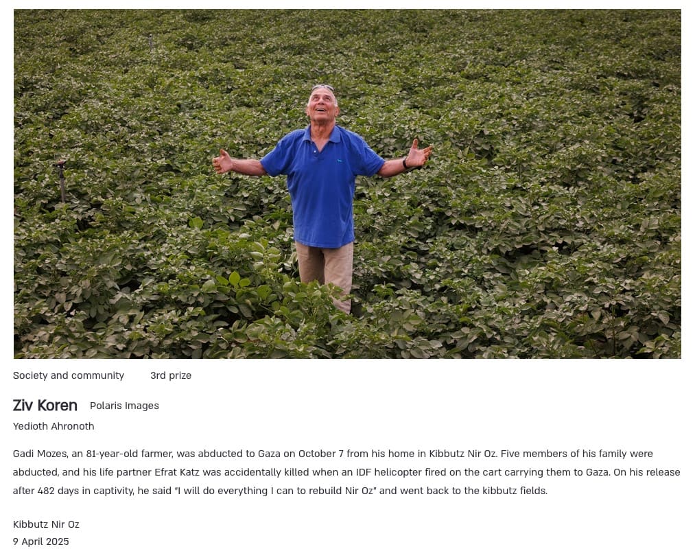 Gadi Mozes within the fields of Nir Oz (view photograph here):