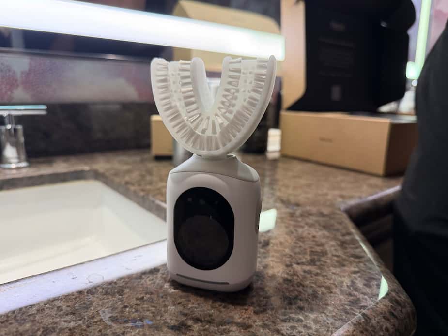 Premières impressions après mon essai en marge du salon de l’électronique CES : l’appareil est assez gros dans la bouche, et donc pas particulièrement confortable à utiliser, mais pas au level que ça pose problèmes. Quand on achète la brosse, on doit numériser sa bouche pour obtenir une brosse de la taille parfaite, ce que je n’ai évidemment pas fait ici. Peut-être qu’elle serait donc plus confortable à la maison.