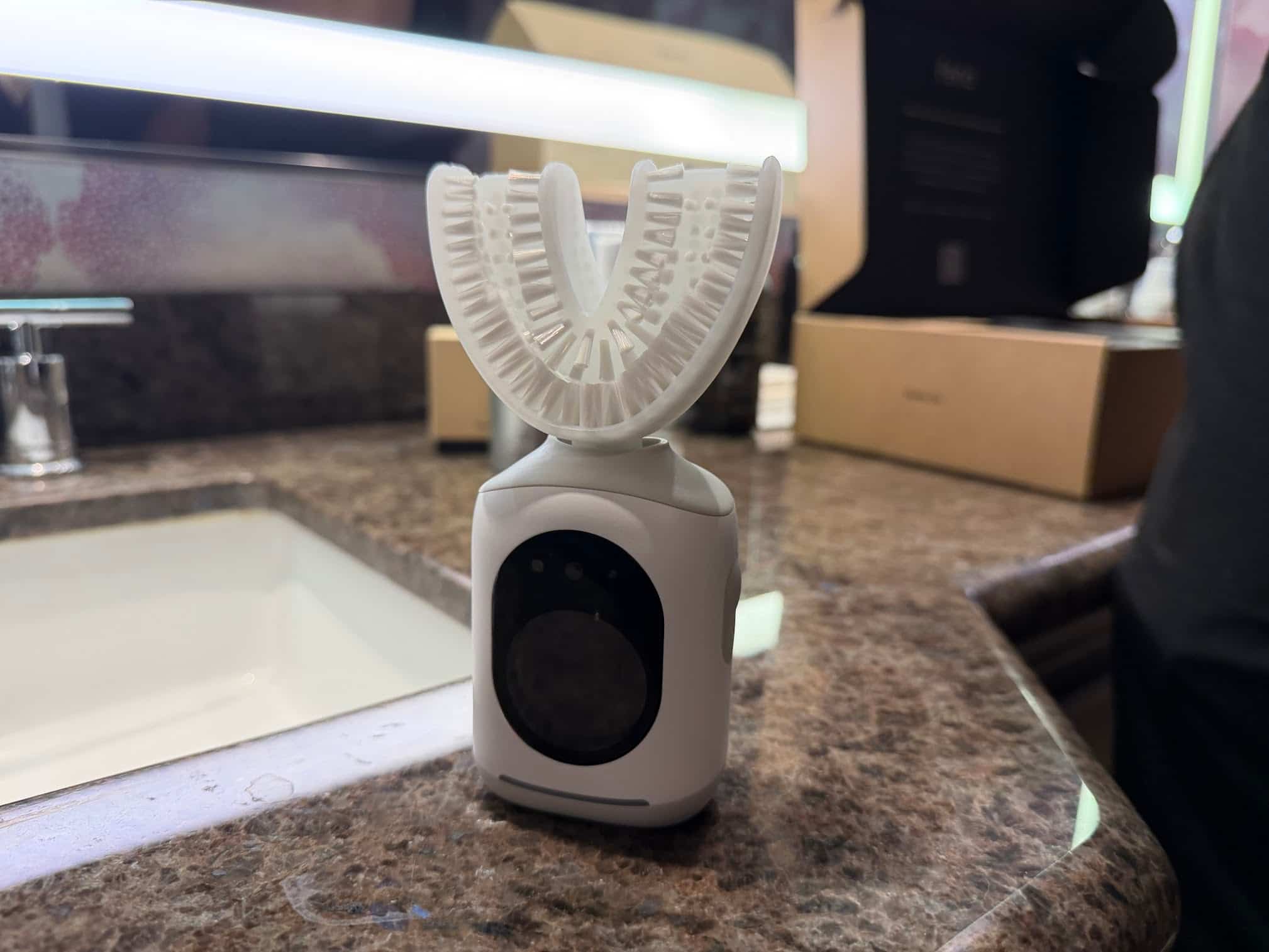 Premières impressions après mon essai en marge du salon de l’électronique CES : l’appareil est assez gros dans la bouche, et donc pas particulièrement confortable à utiliser, mais pas au level que ça pose problèmes. Quand on achète la brosse, on doit numériser sa bouche pour obtenir une brosse de la taille parfaite, ce que je n’ai évidemment pas fait ici. Peut-être qu’elle serait donc plus confortable à la maison.