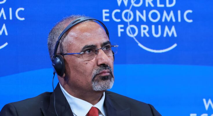 Item 1 of three Aidarous Al-Zubaidi, Vice-President of the Presidential Leadership Council of Yemen, attends the 54th annual assembly of the World Economic Forum in Davos, Switzerland, January 17, 2024. REUTERS/Denis Balibouse/File Photo