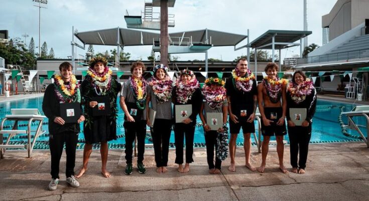 It was becoming that on Senior Day, each the boys’s and the ladies’s groups opened the meet with all senior relay groups each incomes the gold within the 200 medley relays. For the ladies, Isabelle Meraz, Holly Nelson, Kailee Chow and Lola Davison mixed forces to win in a mixed time of 1:44.83. The Rainbow Warriors–Tom Caps, Max Gilsenan, Karol Ostrowski and Tim Brown touched the wall first in a complete time of 1:32.18.