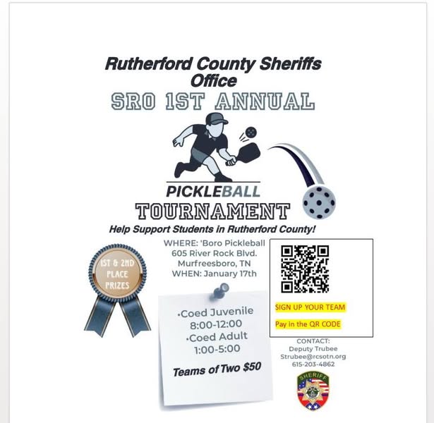 The event can be from 8 a.m. to midday for college students and 1 p.m. to five p.m. for adults, Jan. 17 at ‘Boro Pickleball at 605 River Rock Blvd. in Murfreesboro.