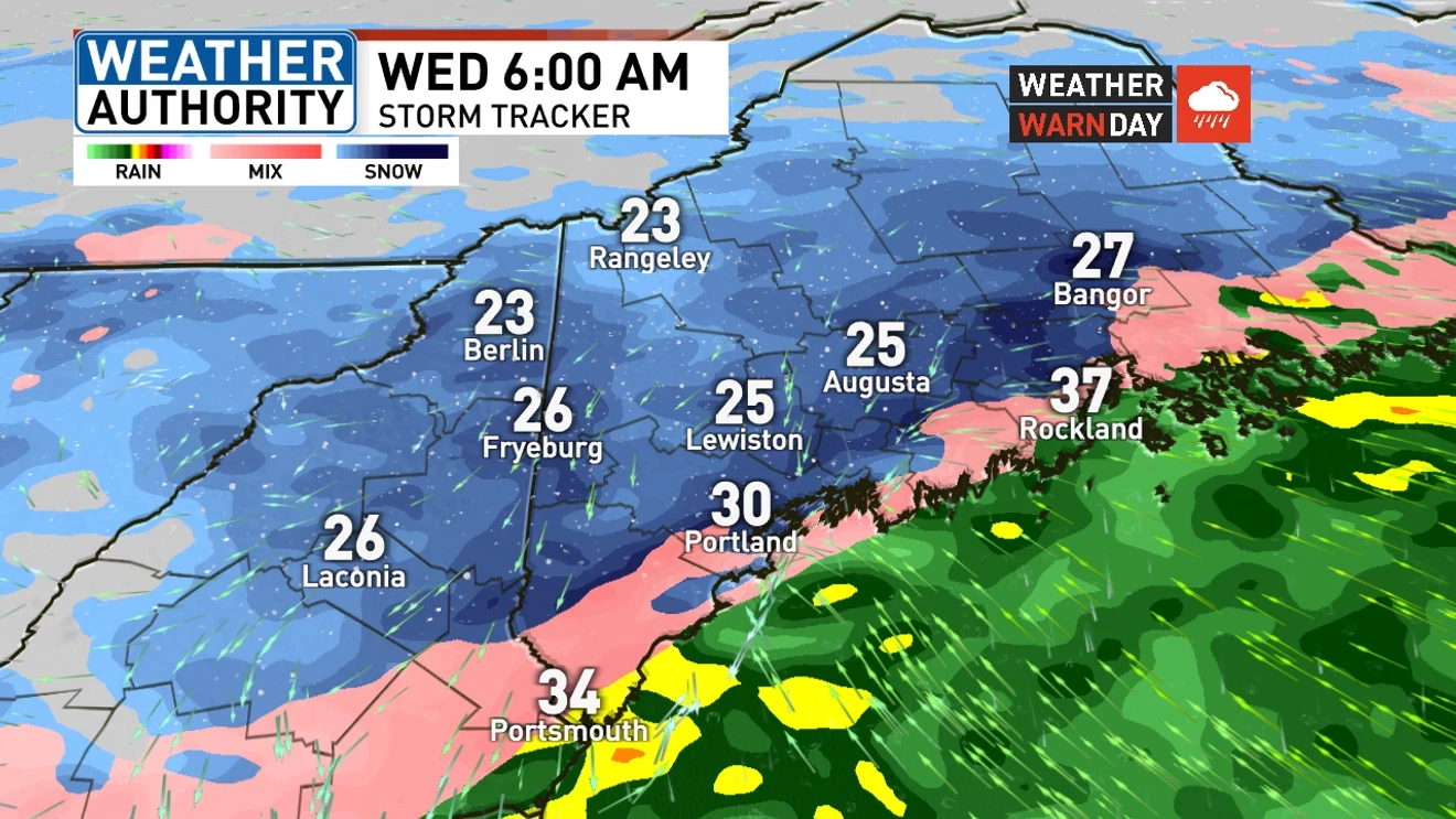 PORTLAND (WGME) — The subsequent spherical of winter climate is about to hit Maine with snow, sleet, freezing rain, and rain Tuesday night time via Wednesday morning.