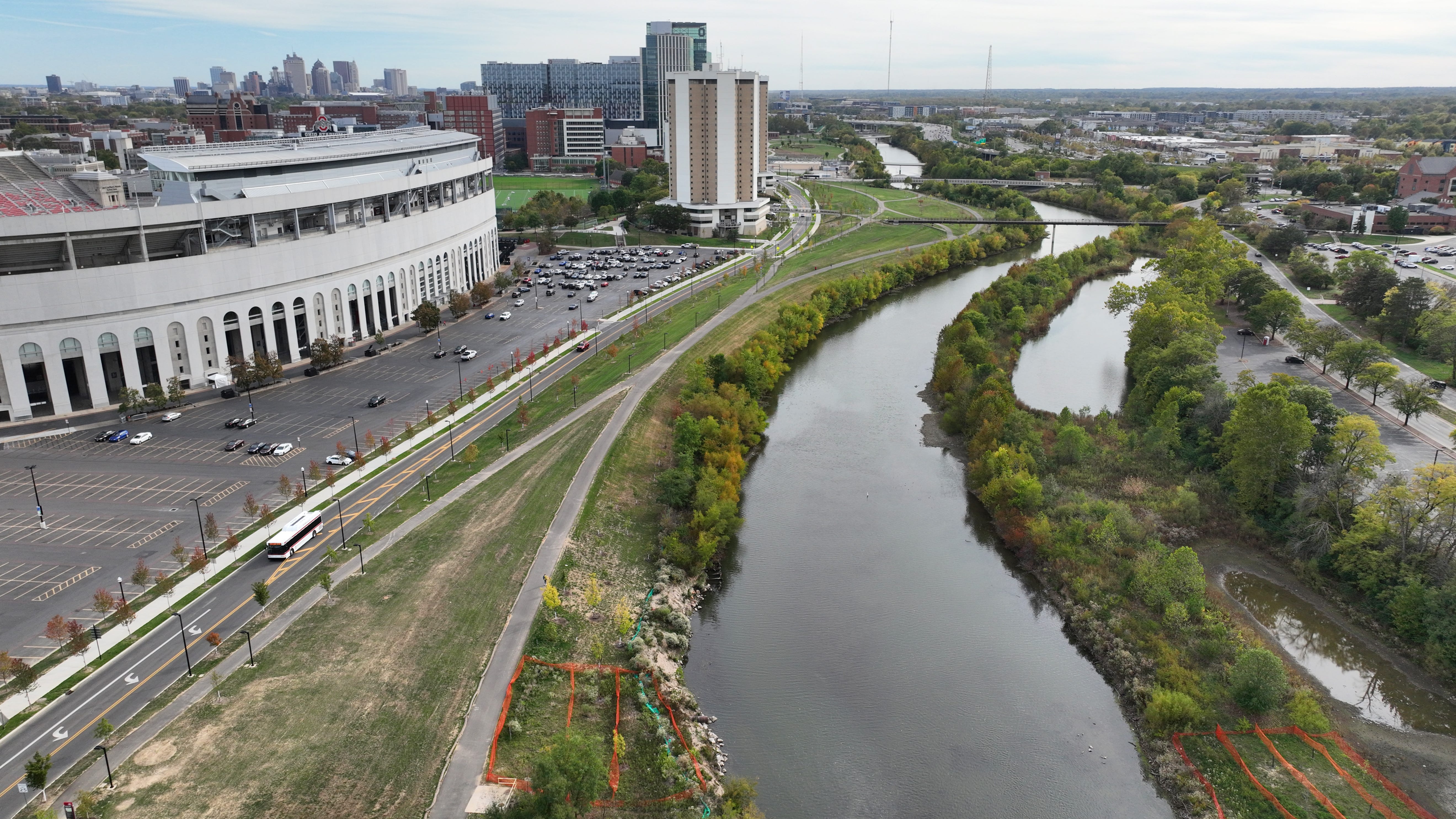 New parks, bike path transforms Olentangy River by way of Ohio State space as University Hospital is constructed, Cannon Dr. redesigned round Ohio Stadium.