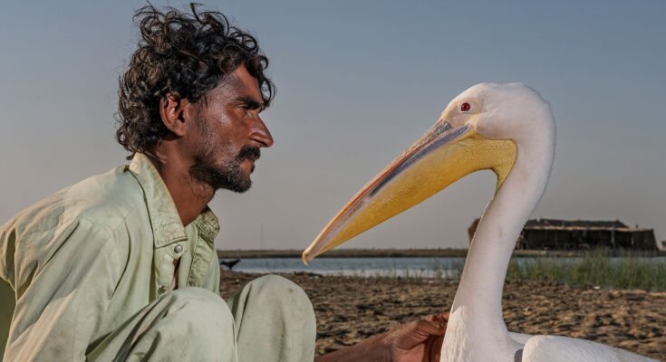 The image portrays Ali Kasghar, one of the last masters of an ancient technique practiced by the Mohana people, often referred to as the “bird people” – a fishing community who have lived for generations on the waters of Lake Manchar, Pakistan’s largest freshwater lake, located in Sindh Province.