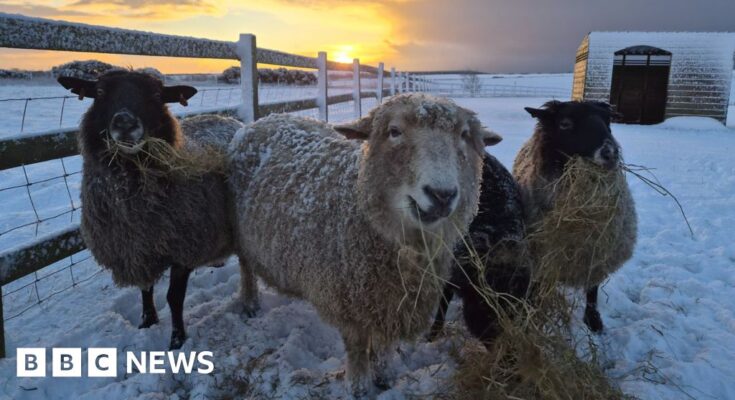 Isla Anderson’s 4 sheep – named Haggis, Neeps, Tatties and Skirlie – didn’t thoughts being snowed in close to Foveran.