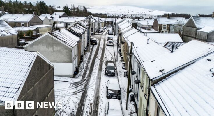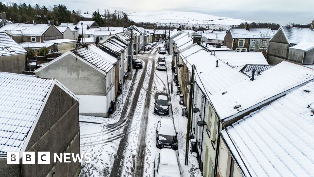 PA Media Residential streets in Dowlais, near Merthyr Tydfil, Wales, taken from a drone camera after Storm Goretti leaves a blanket of snowPA Media