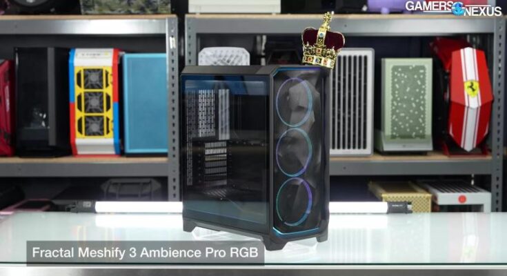 The case for the construct is our alternative for greatest general case of 2025 – the Fractal Design Meshify 3 RGB. In that “best of” roundup, we particularly identified the Ambience Pro RGB variant of the Meshify 3; however, it’s currently out of stock or too expensive, depending on where you look. Check out our full review if you’re interested, but we’ll list some high points here.