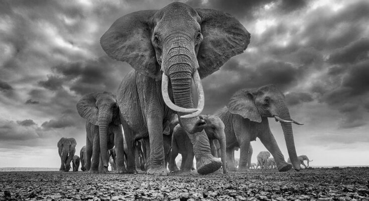 “There’s a collection of dry lakes on this area and my goal was to seize a giant herd of elephants crossing them, with a visually minimalistic really feel incorporating the weather of cracked earth and the stormy skies that construct at sure occasions of the 12 months.