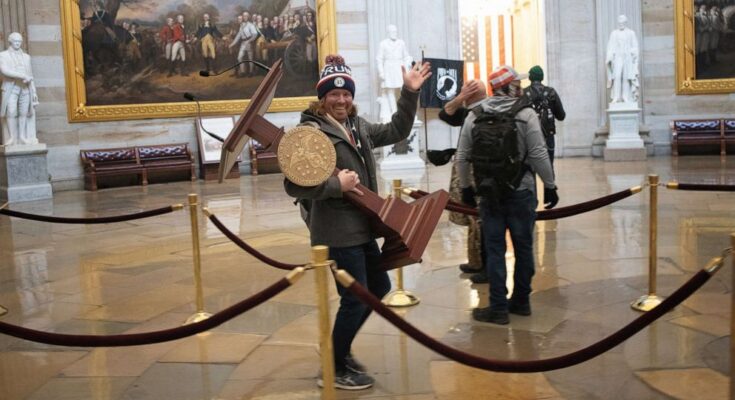 Johnson positioned the rostrum within the heart of the Capitol Rotunda, posed for photos and pretended to make a speech, prosecutors mentioned. He pleaded responsible in 2021 of coming into and remaining in a restricted constructing or floor, a misdemeanor that he equated to “jaywalking” in the interview.