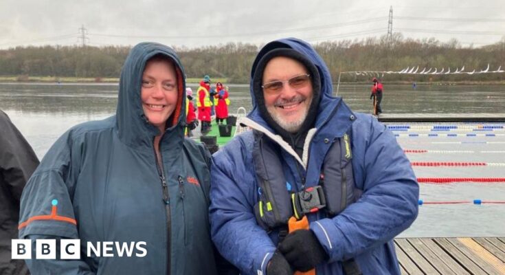 The Really Cold Swim Championship, held at Rother Valley Country Park close to Rotherham, noticed contributors don their swimming costumes and courageous water temperatures of 2C (35F).
