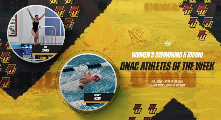 WINTHROP, Mass. – The Norwich University ladies’s swimming & diving group picked up two extra weekly honors from the Great Northeast Athletic Conference (GNAC) on Monday afternoon, as Delaney Allen (Gibsonia, Pa.) was named GNAC Rookie of the Week for the third time this season, and Ava LePage (Palmyra, Maine) earned the primary Diver of the Week nod of her profession.