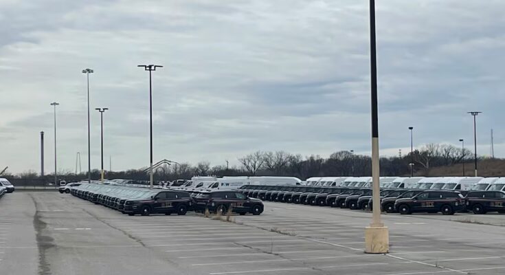 KANSAS CITY, Mo. (KCTV) – KCTV5 information crews have seen dozens of ICE-branded automobiles parked in rows at a car parking zone in Kansas City.