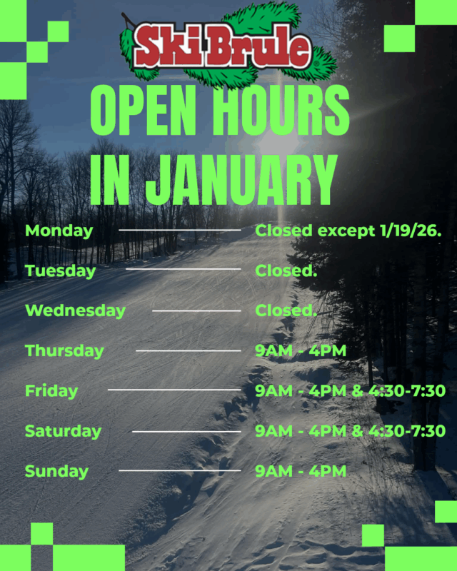 Ski Brule is worked up to welcome company January 15–19, 2026 with nice snowboarding, using, eating, and winter enjoyable all weekend lengthy!