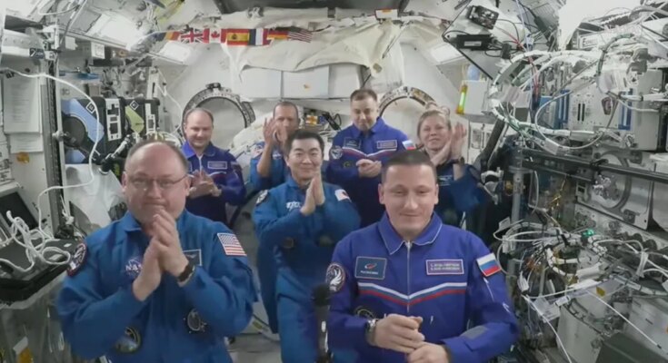 “Despite all the changes and all the difficulties, we’re going to do our job on board ISS, performing scientific tasks, maintenance tasks, whatever happens. It’s a big honor to be a commander of space station,” Kud-Sverchkov stated. “Thank you, Mike. And I want to (issue) the first command: let’s make a group hug!”