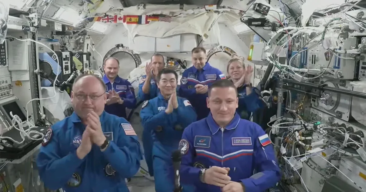 “Despite all the changes and all the difficulties, we’re going to do our job on board ISS, performing scientific tasks, maintenance tasks, whatever happens. It’s a big honor to be a commander of space station,” Kud-Sverchkov stated. “Thank you, Mike. And I want to (issue) the first command: let’s make a group hug!”