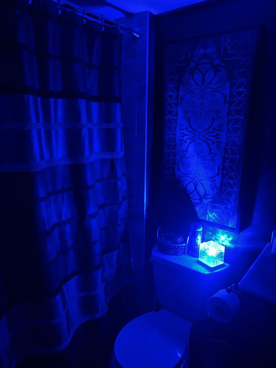 The boys had requested for some kind of enjoyable mild for Christmas to make use of of their lavatory once they bathe (to not have the overhead common lights on), and I discovered this little rechargeable, wi-fi dice on-line. I’ve it within the blue mode, however you can also make it any shade and it initiatives “wave-like” pictures onto the ceiling.
