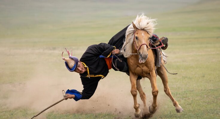 Ann Westling_Mongolian Practice Competition_Grabbing a Riding Crop Off the Ground