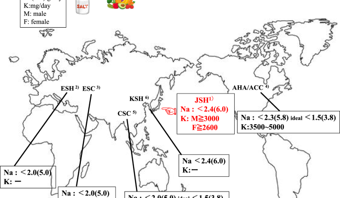 JSH2025 retains the goal of lower than 6 g of salt per day, a worth first established by JSH2004. In distinction, many worldwide tips set decrease targets (Table 1) to attain larger reductions in blood strain (BP). JSH2025 established 11’Questions (Q)’ addressing sensible scientific questions confronted by physicians. Regarding salt discount, contemplating that abroad tips suggest decrease goal values: Q.3 Is it essential to additional cut back the goal salt consumption for hypertensive sufferers in Japan from < 6 g/day? The reply is as follows: “Salt reduction is dose dependent, and a further reduction in salt intake below 6 g/day can be expected to result in further reduction of BP. However, it is not easy to reduce salt intake further while maintaining energy requirements and other nutrients in the daily diet; therefore, unless guidance is available from a dietitian or other specialist, there is no need to reduce salt intake further than <6 g/day” [1]. In different phrases, the JSH could be acknowledged as having set achievable objectives with out adversely affecting well being.