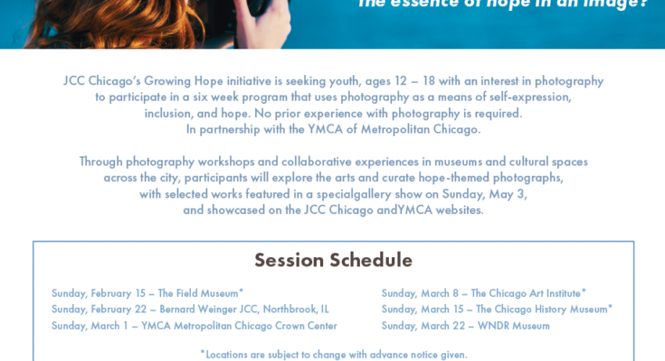 JCC Chicago’s Growing Hope initiative is searching for youth, ages 12 – 18 with an curiosity in pictures and artistic expression to take part in a six-week program that makes use of pictures as a way of self-expression, inclusion, and hope. No prior expertise with pictures is required.