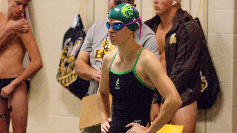 Junior Gabby Kuetemeyer gained the 100 Yard Butterfly by over seven seconds in a time of 1:06.27 earlier than taking third place within the 100 Yard Breaststroke at 1:17.18.