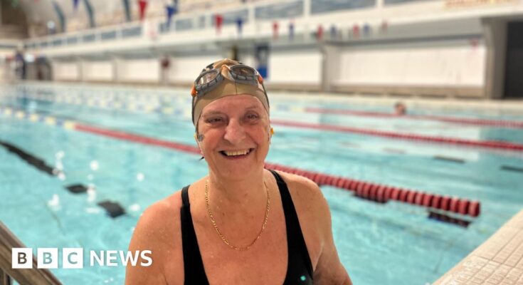 Glenys Lock was among the many first swimmers on Monday. She has used the power for greater than 50 years and mentioned it was “wonderful” to be again.