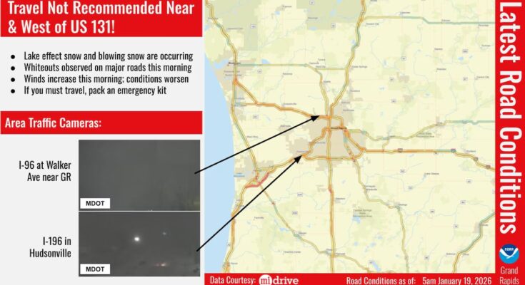 “The most hazardous period for travel will be this morning into the afternoon hours before winds relax this evening. However, snow showers continue into tonight. Consider postponing your travel plans today if you live along the lakeshore or east toward the U.S. 131 corridor.”