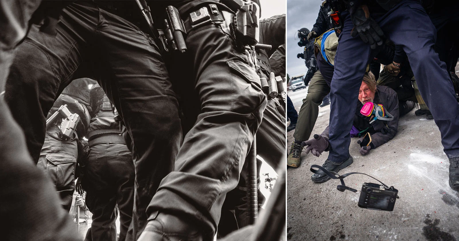 There was even a 3rd perspective of this, as sketch artist Isabelle Brourman was on the scene drawing the occasions as they occurred, together with Abernathy being pepper-sprayed within the face. Brourman even captured the small print of Abernathy throwing his digicam and an agent stepping on his telephone. It is a exceptional scene, and Brourman might be seen within the background of one in all Lavie’s pictures, sporting a hood and a fuel masks, drawing.