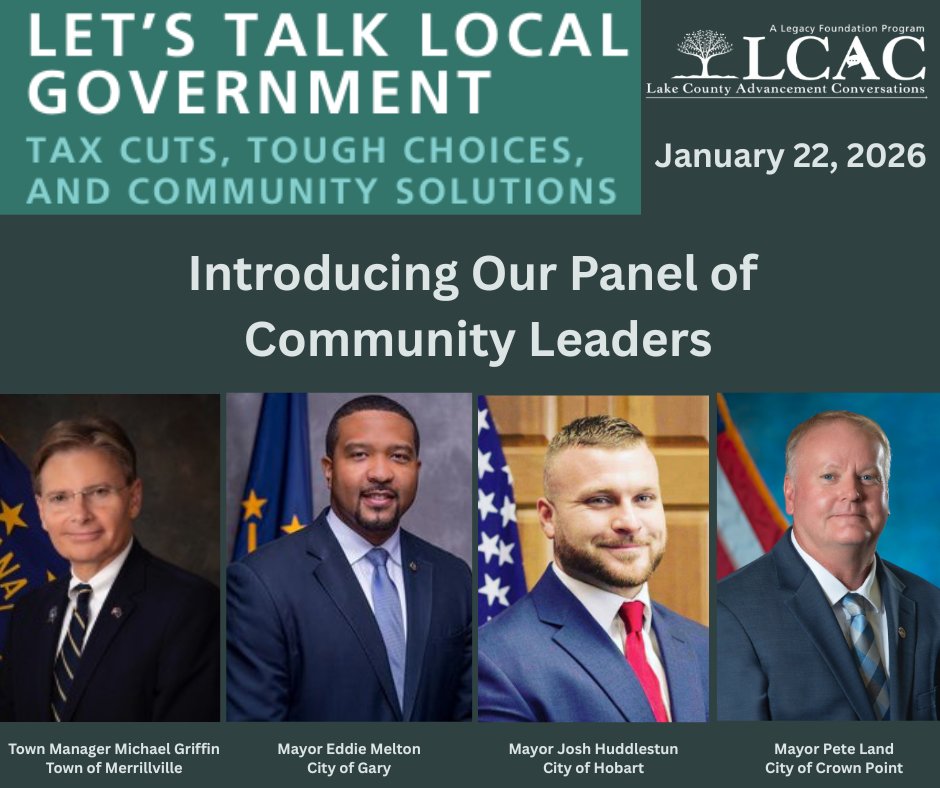 This Thursday, be a part of Legacy Foundation at Avalon Manor for a dialog with a number of civic leaders, together with Hobart Mayor Josh Huddlestun, Crown Point Mayor Pete Land, and Gary Mayor Eddie Melton. Learn concerning the points affecting your group and make your voice heard! Learn extra here.