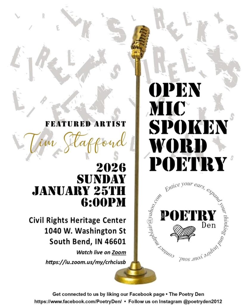 Another season of the Poetry Den is heading to IU South Bend! Whether you’re a poet with phrases to share or a listener hoping to sit down again and revel in, the Poetry Den has been the place in South Bend to unite poets and associates for over twelve years. Founder and host Pam Blair will begin with an open microphone that includes all kinds of voices and types. The night finishes with a unique featured artist every month. This free occasion is obtainable each in-person and on-line by way of Zoom. Learn extra here.