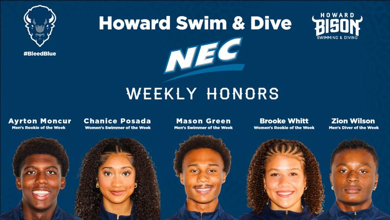 BRIDGEWATER, N.J. (January 21, 2026) – The NEC revealed its males’s and girls’s swimming & diving weekly accolades the place Howard University noticed 5 Bison acknowledged for his or her excellent efforts towards Towson, VMI and Saint Francis. The announcement got here Wednesday afternoon.