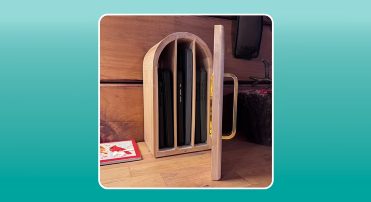 The Phone Box is, nicely, simply that: a field in your cellphone. It is a fantastically made bamboo field that may maintain as much as six telephones, has charging holes within the again, and is available in 4 colorways; we received the pure wooden to match our cabin.