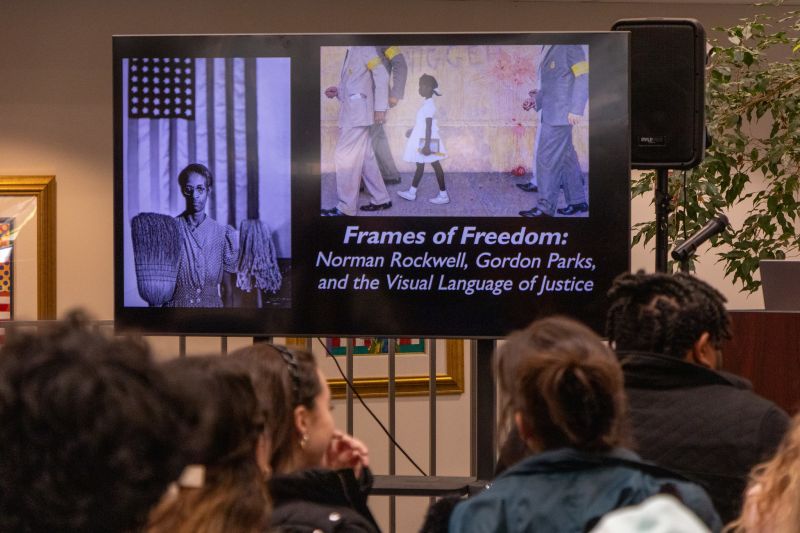 Led by Professors of Art Derek Eley and John Rudel, the presentation launched per week of occasions honoring Dr. King’s enduring beliefs. Through iconic works by Gordon Parks and Norman Rockwell, the audio system explored how photographs problem stereotypes, spark ethical reflection, and advance social change—an affect that continues to resonate right now.