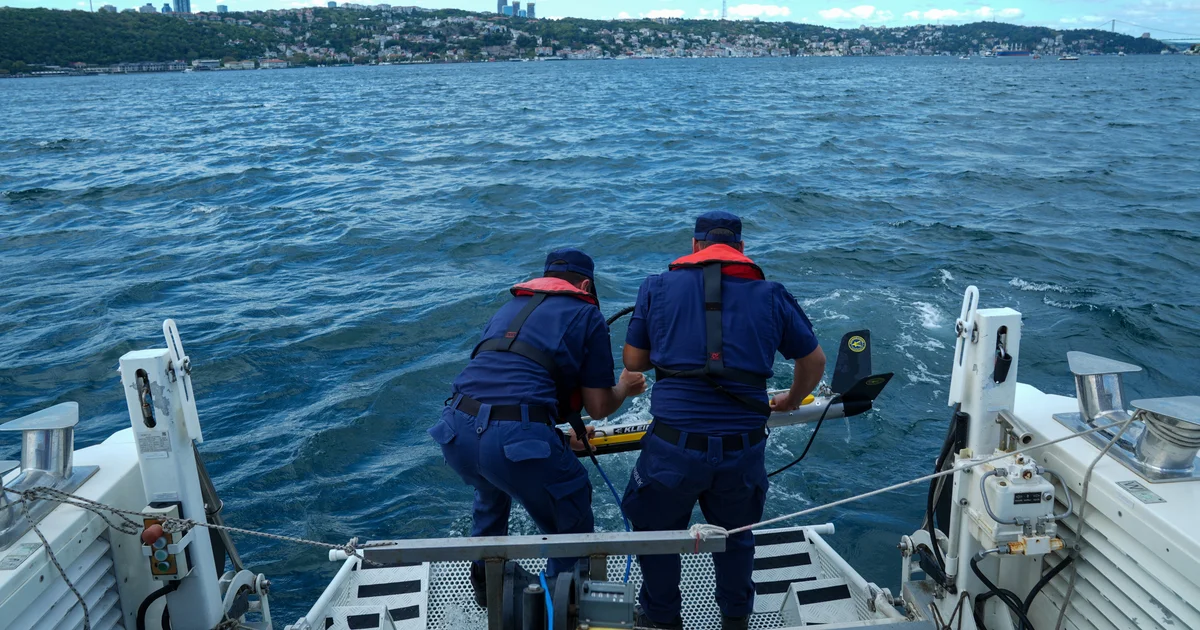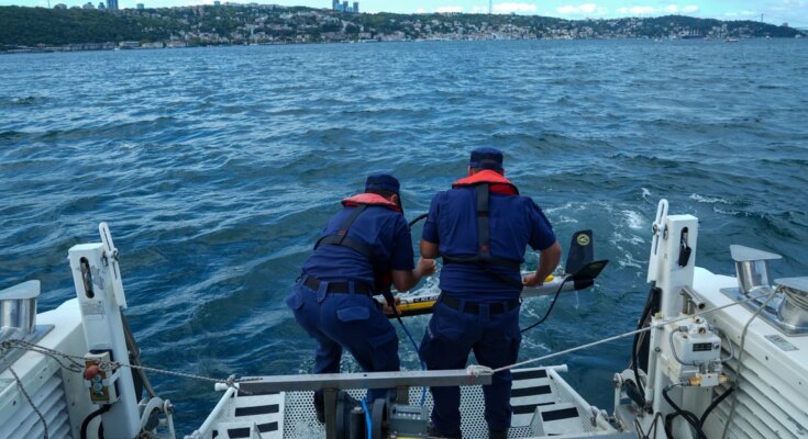 Search operations for lacking Russian swimmer Nikolai Andreevich Svechnikov on the Bosphorus Strait, carried out by the Coast Guard Marmara and Turkish Straits Regional Command, proceed with the usage of a Side Scan Sonar (SSS) gadget in Istanbul, Turkey on August 27, 2025.