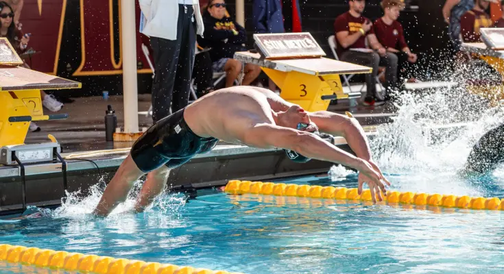 Dobrzanski placed first in the 100 breast, hitting the wall in 51.00, the second fastest time in ASU history. He also won the 200 breast (1:50.59) and helped in winning the 400 medley relay. He set personal bests in both breaststroke events, solidifying his spot as the second fastest breaststroker in program history, only behind four-time Olympic gold medalist Leon Marchand.