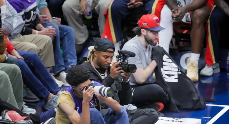 Reid formally added “photographer” to his resume Wednesday night time as he sat on the baseline on the Smoothie King Center and took footage and shot video for the New Orleans Pelicans’ social media staff for the sport towards the Detroit Pistons.