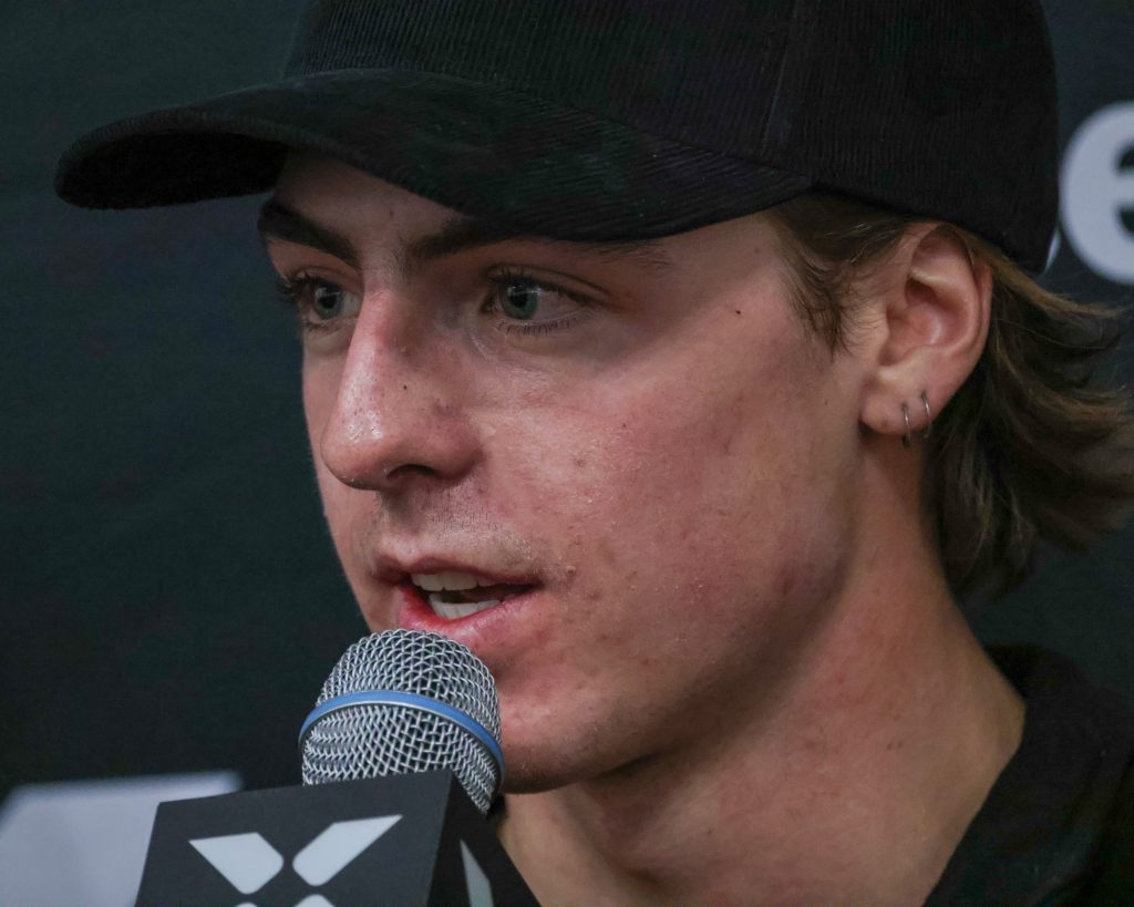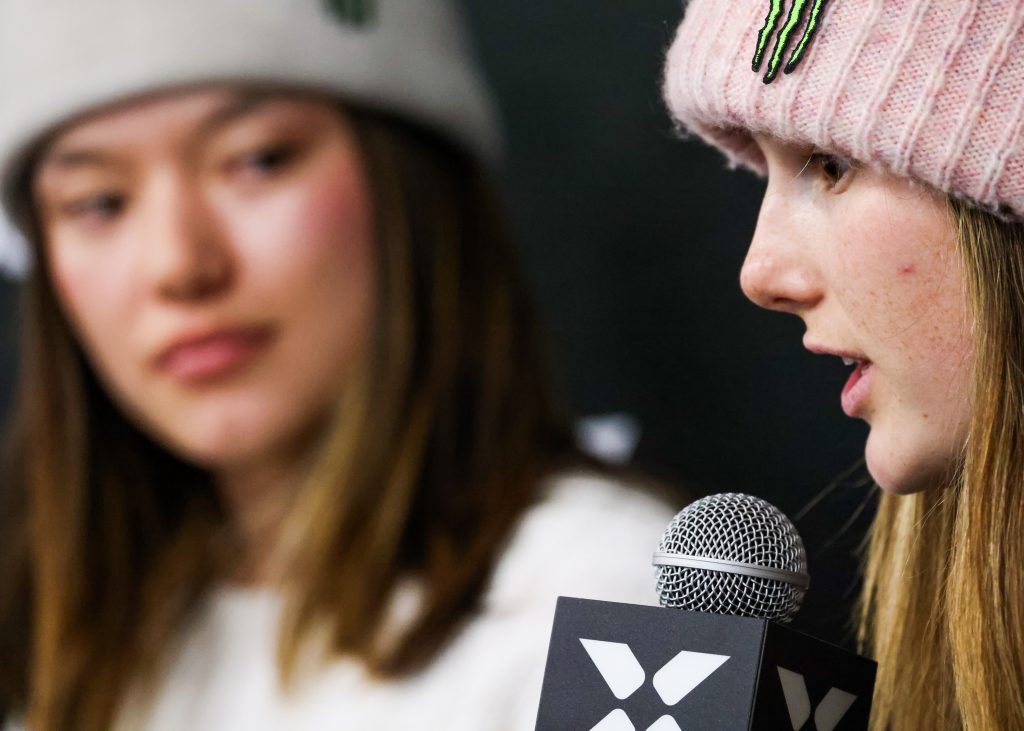 Utah freeskier Alex Hall talks throughout the X Games Aspen pre-event press convention on Thursday, Jan. 22, 2026, at Buttermilk Ski Area.