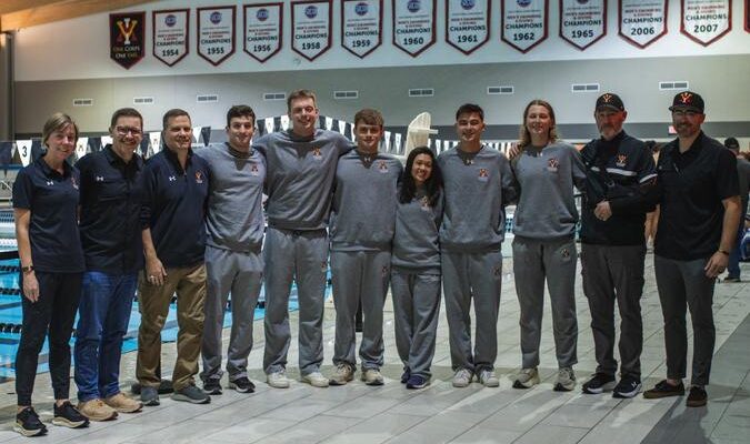 Caleb Wolf kicked off VMI’s profitable streak within the 1,000 Free (9:53.93) and once more within the 500 Free (4:45.71) later within the night time. Twin brother Joshua Wolf continued the stretch within the 200 Free (1:42.72) and 200 Back (1:56.45).