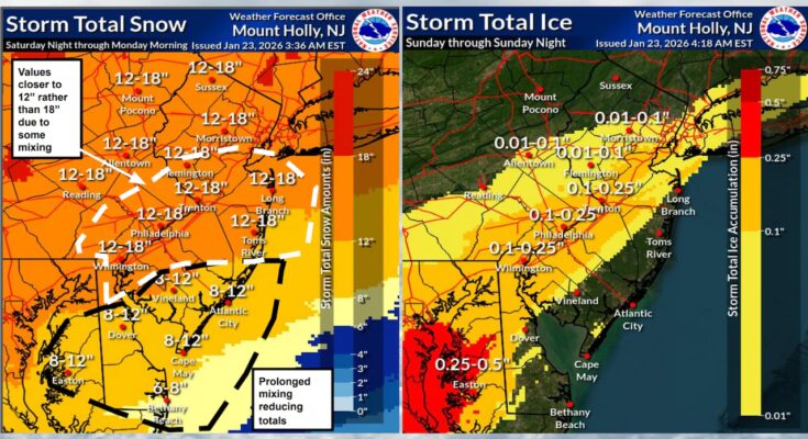A winter storm that’s forecasted to deliver as a lot as 12 to 18 inches of snow and harmful ice statewide has brought about officers to name for a ban of sure automobiles on a number of main New Jersey highways this weekend.