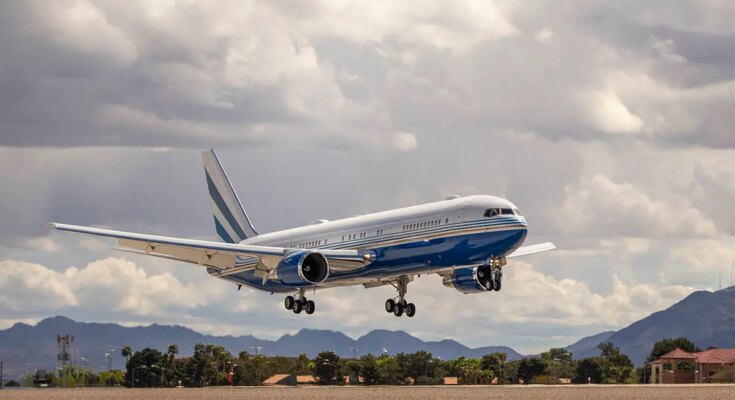 CCI’s description of the “world-class” jet says it’s “configured with an elegant executive interior” and comfortably accommodates as much as 60 VIP passengers in a “spacious, ultra long-range cabin environment.”