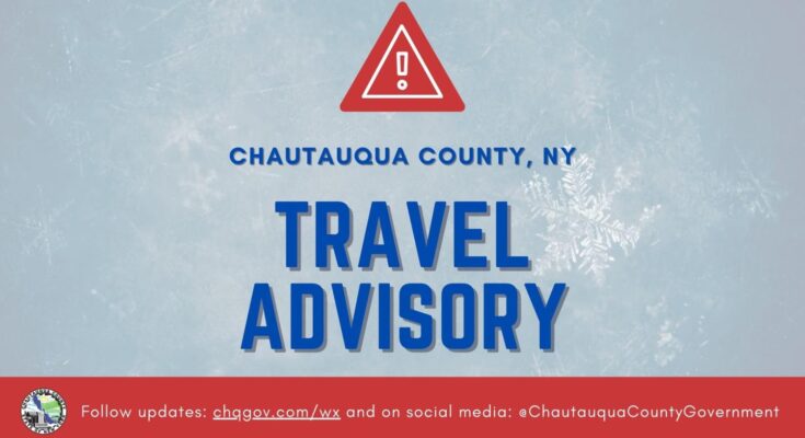 Chautauqua County is issuing a Travel Advisory discouraging all non-essential journey till Tuesday, January 27 at 5:00 a.m. Residents are inspired to keep house if attainable and solely journey if completely mandatory.