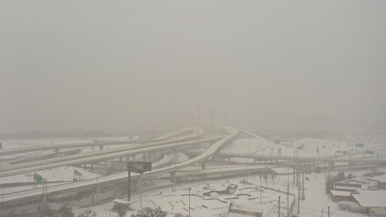 Heavy snowfall brings near-whiteout situations Jan. 25, 2026, to Louisville. (Spectrum News 1/Mason Brighton)