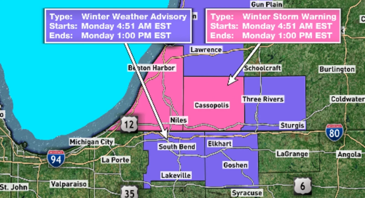 ***WINTER WEATHER ADVISORY FOR ST. JOSEPH COUNTY AND ELKHART IN INDIANA, AND ST. JOSEPH COUNTIES IN MICHIGAN UNTIL 1 PM ON MONDAY ***