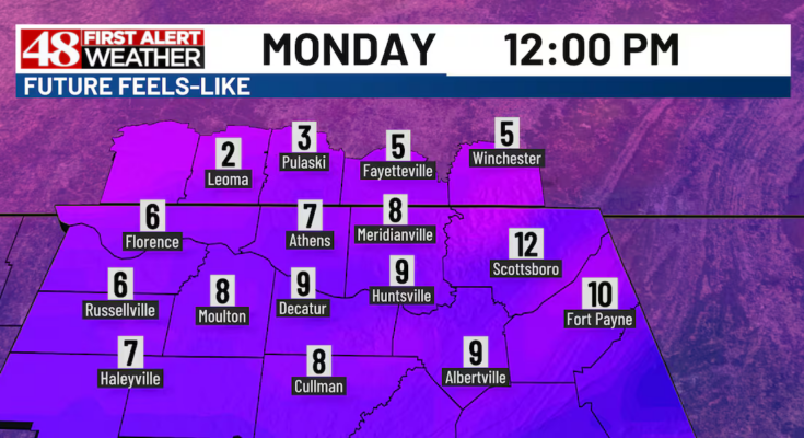 HUNTSVILLE, Ala. (WAFF) – Good Monday morning. Today is a 48 First Alert Weather Day for harmful wind chill values and unsafe journey throughout the Tennessee Valley.