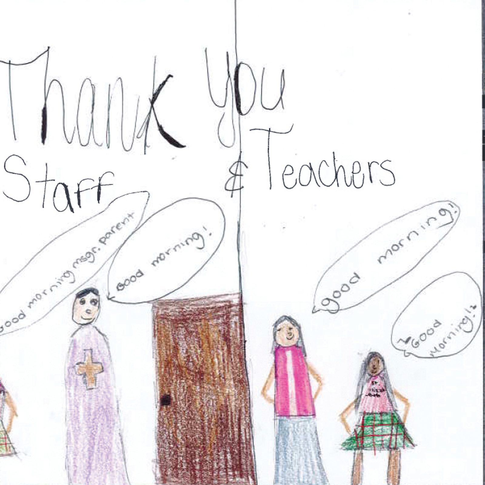 “I have so many reasons that I love my Catholic school, but I will narrow it down to just one. I love my school so much because our school teachers and staff are always so nice. When you go to school, they will welcome you in, and when you leave to go home, they ask you about how your day was. This makes me feel like I am part of my school family and my school community. Thank you!” – Artwork and writing by Manara Pathirana, sixth grade, St. Elizabeth School, Rockville